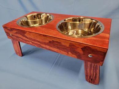 A raised bowl is better for the digestion of large dogs, and they spill less.